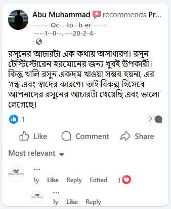কালোজিরা রসুনের আচার ৪০০ গ্রাম