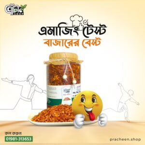 📦 বাহিরে ৫-৬ মাস সংরক্ষণযোগ্য – দেশি পেঁয়াজ ও রসুন ব্যবহারের কারণে দীর্ঘদিন স্বাদ ও মচমচে ভাব বজায় থাকে।