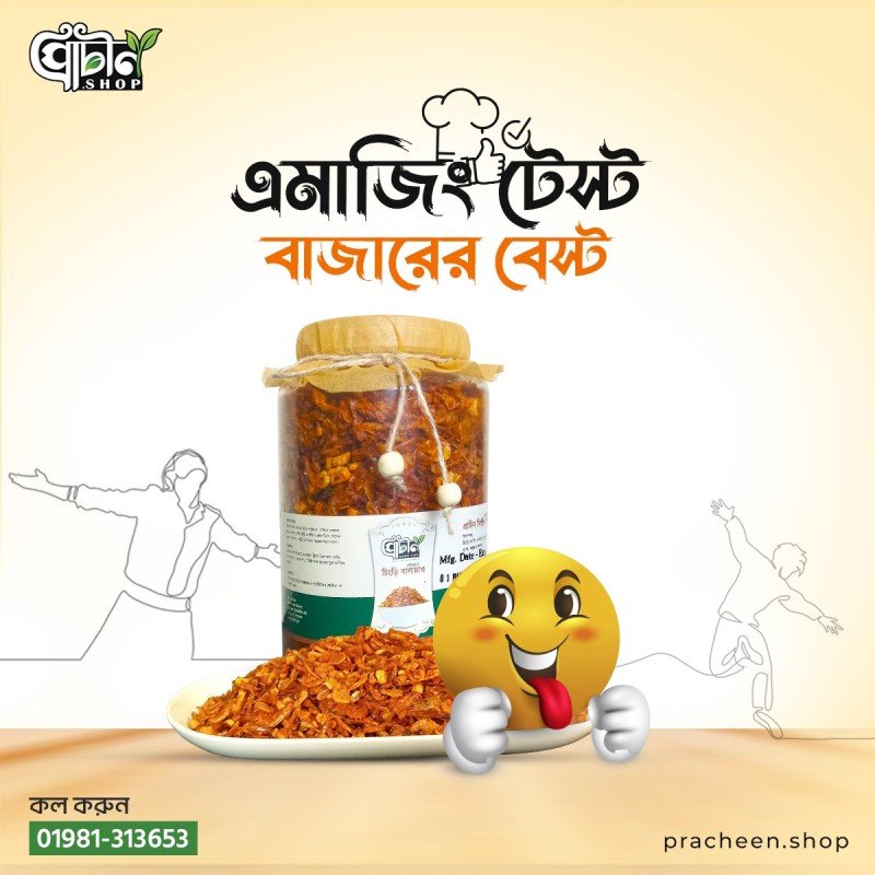 ✔ সেরা মানের উপকরণ ব্যবহার করা হয় – শুধুমাত্র বাছাইকৃত চিংড়ি শুঁটকি, দেশি পেঁয়াজ ও রসুন ব্যবহার করি।